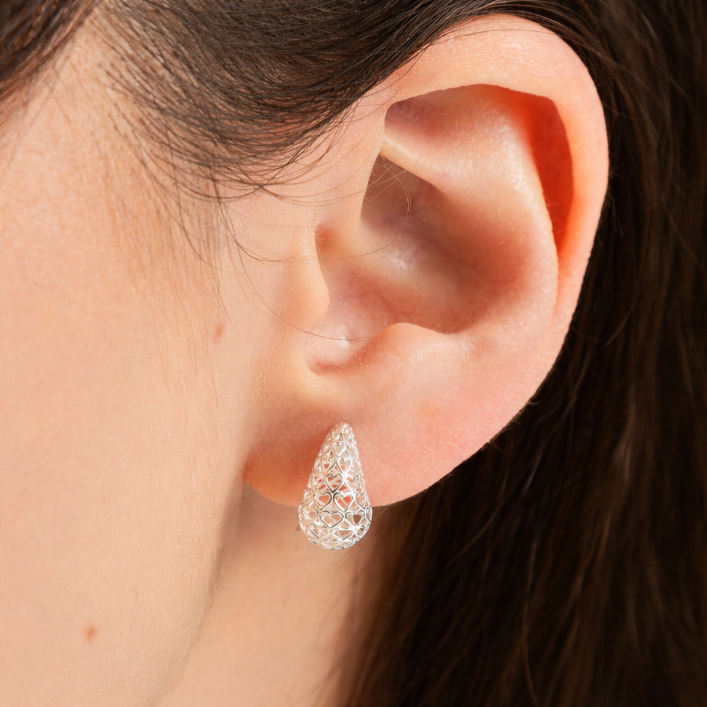 Brinco de Prata 925 Gota Vazada de Corações